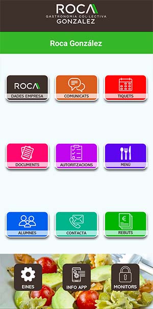 Aplicació fàcil i intuïtiva per consultar tot allò relacionat amb la gestió dels menjadors escolars per a empreses de càterings.